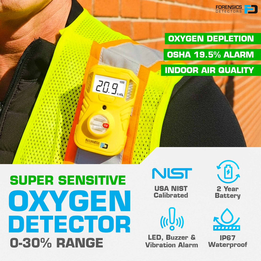- ⚛️ DETEKCJA: Przemysłowy detektor O2, 0 - 30,0% objętości z rozdzielczością 0,1%. Czujniki elektrochemiczne. Fabrycznie skalibrowany.